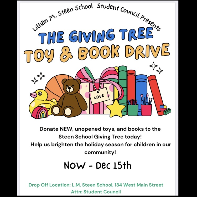 ✨🎁 The Giving Tree Toy & Book Drive is here! 💛L.M. Steen School Student Council is collecting NEW, unopened toys and books to brighten the holiday season for children in our community. Donate now through Dec 15! Drop off at L.M. Steen School. @bogotapublic