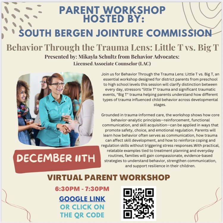 Don’t miss the virtual parent workshop on Dec 11, 6:30–7:30 PM: Behavior Through the Trauma Lens – Little T vs. Big T. Learn how different stressors shape behavior and gain tools to support emotional regulation at home. Use the link or QR code to join! @bogotapublic