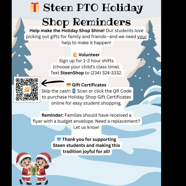 ✨ The Steen PTO Holiday Shop is almost here! 🎁 Students LOVE picking out gifts, and we need your help to make the magic happen. Thank you for supporting our Steen community! 💙 @bogotapublic